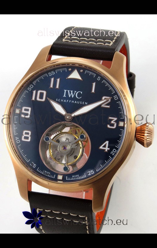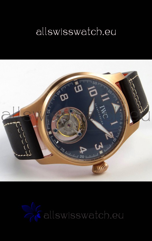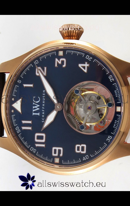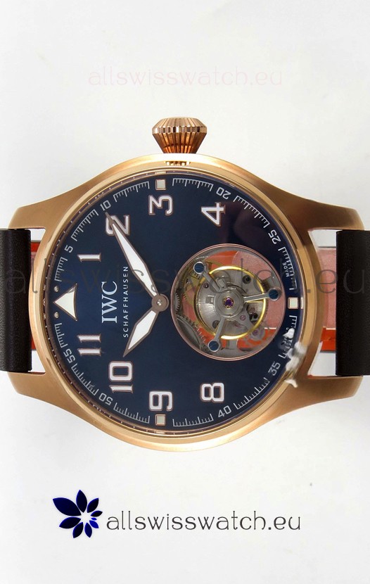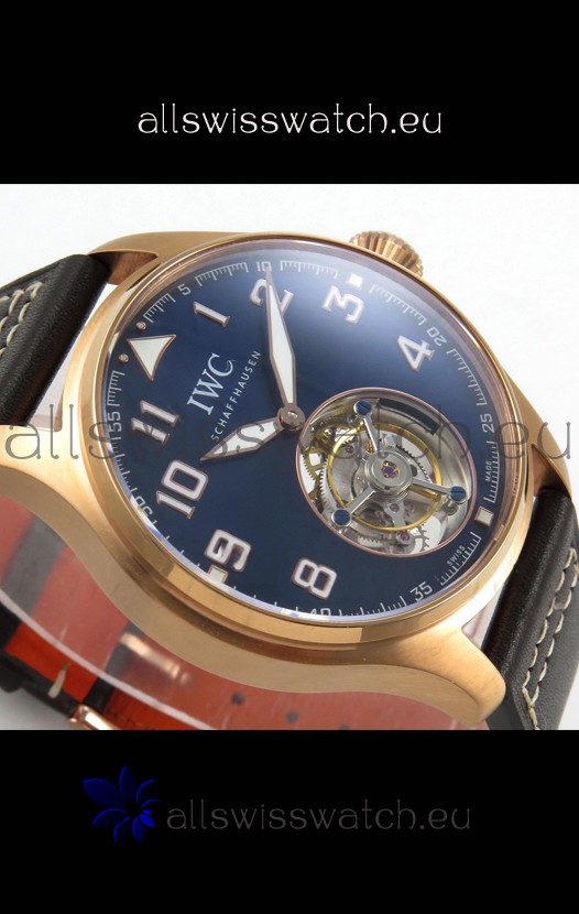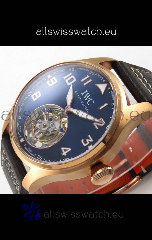 IWC Super Clone Portugese Hand-Wound Genuine Tourbillon Blue Dial Rose Gold Casing Watch