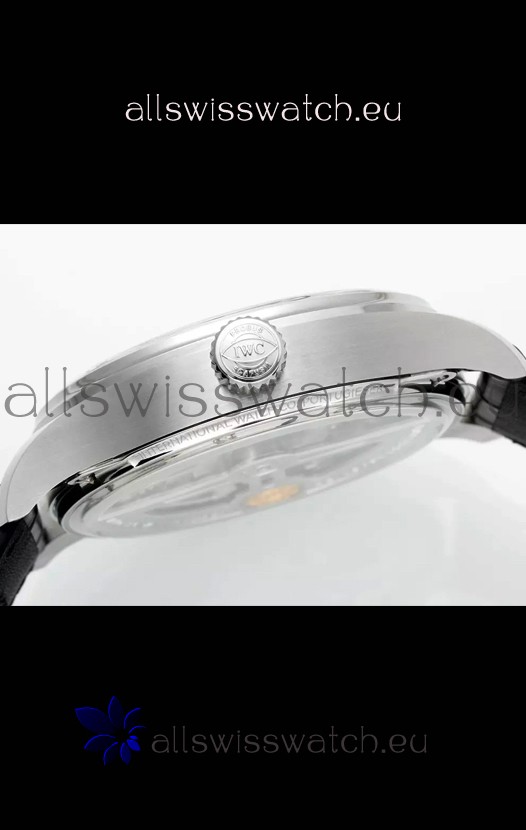 Genuine Leather Strap with Stainless Steel Clasp complete with IWC markings and Engravings.