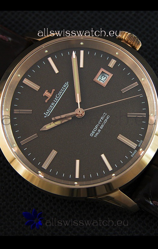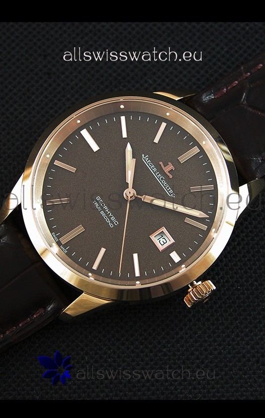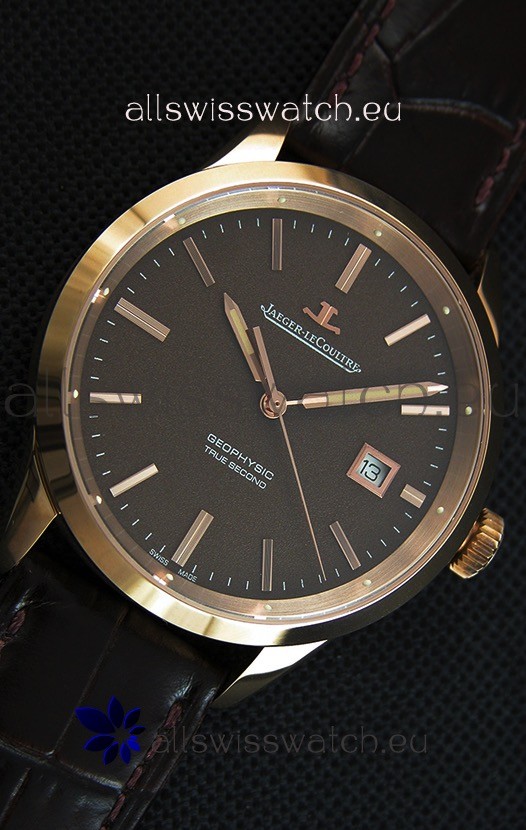 Jaeger LeCoultre Geophysic True Second Pink Gold Swiss Replica Watch Brown Dial
