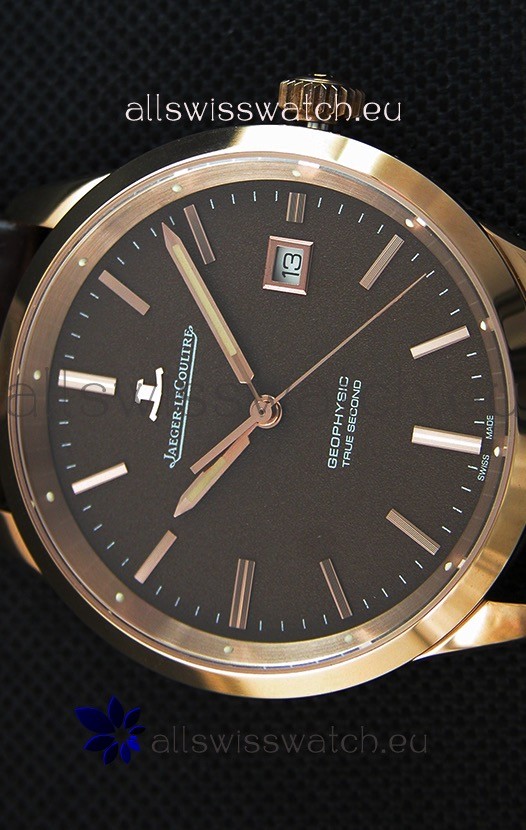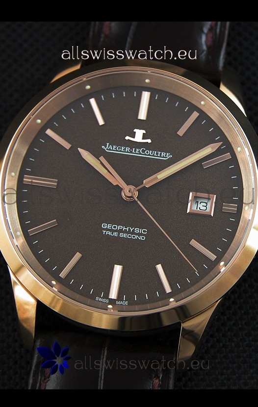 Top Grade Jaeger LeCoultre Geophysic True Second Pink Gold Swiss Replica Watch Brown Dial with Free Shipping and 1 year warranty
