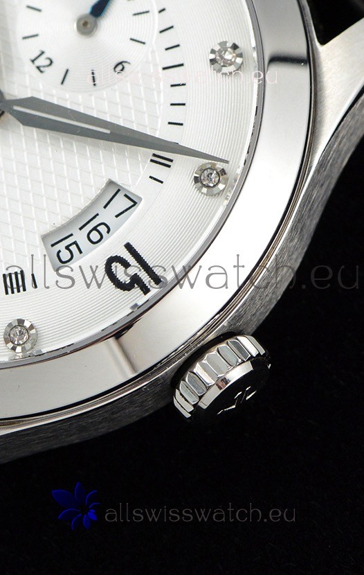 White dial with Dual Sub Dials for Seconds and 12/24 Hours Indicator with Date Indicator at 3 O'Clock