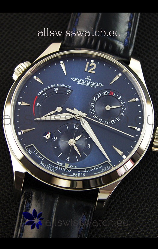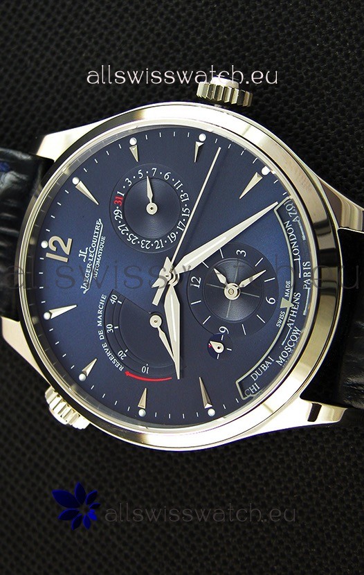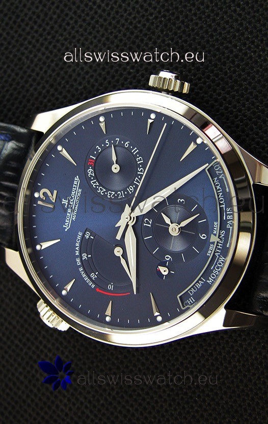You're reviewing: Jaeger LeCoultre Master Geographic Power Reserve Steel Case Steel Blue Dial Swiss Replica Watch