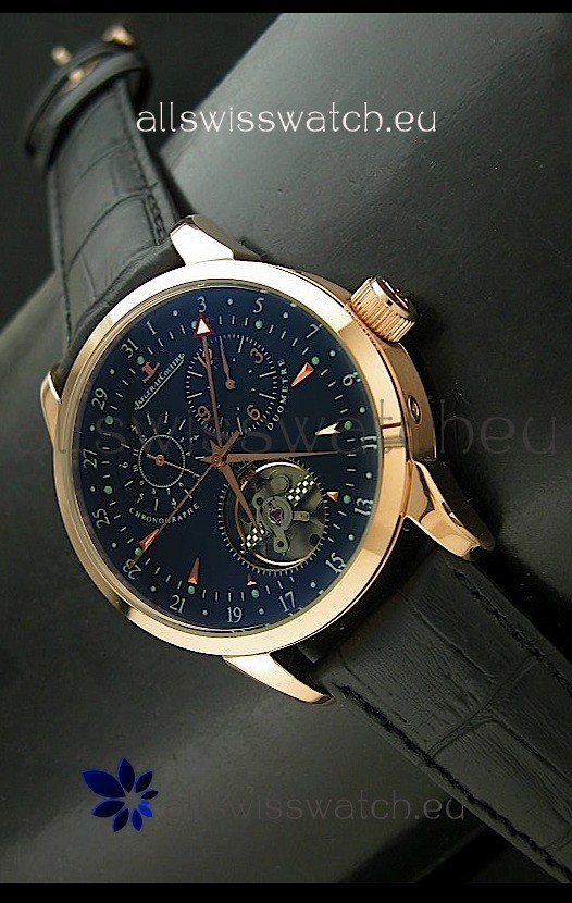 Watch name: Jaeger-LeCoultre Master Minute Repeater Japanese Replica Rose Gold Watch in Dark Blue Dial