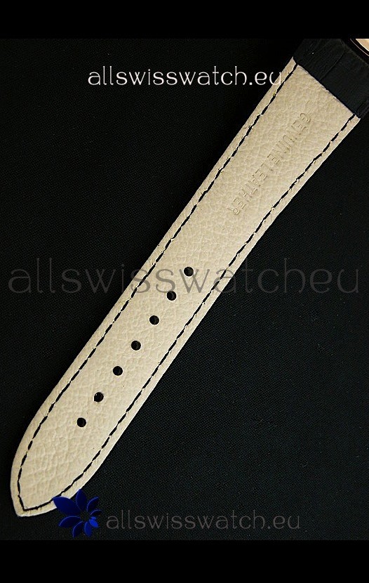Strap: Genuine Black Leather Strap with Tang Buckle