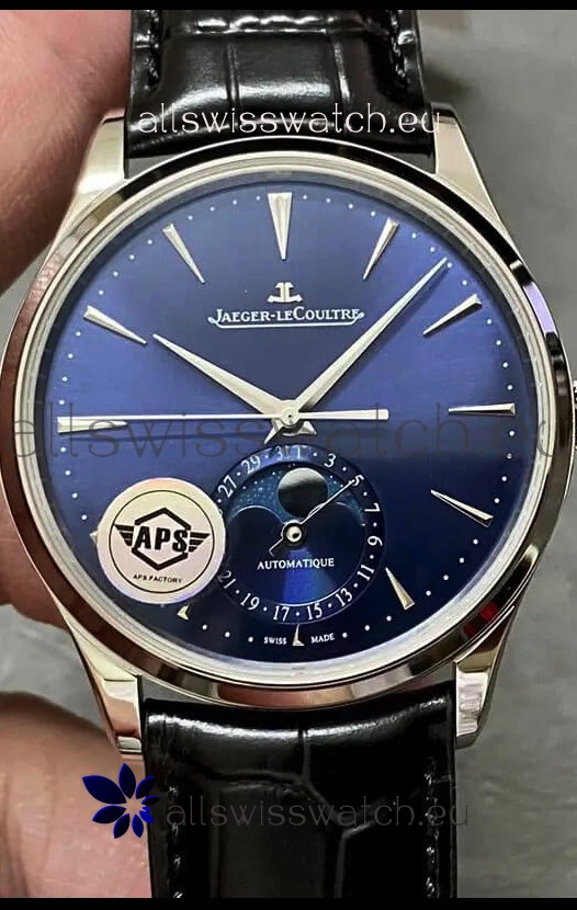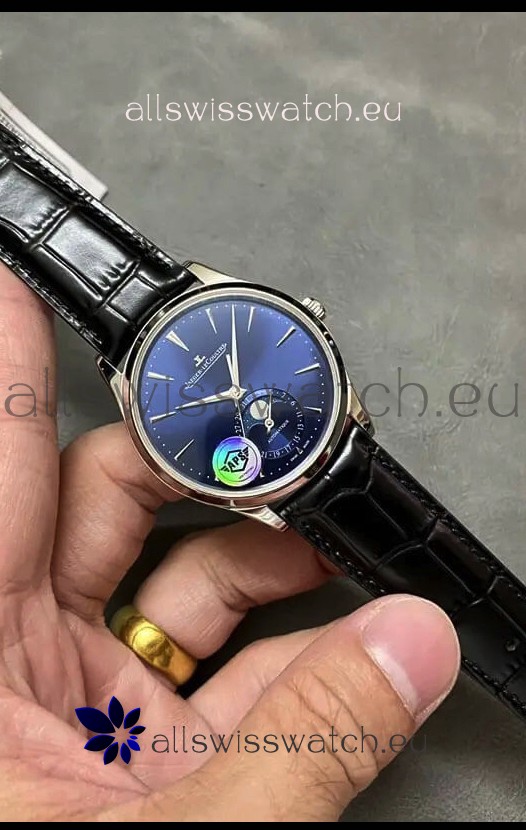 Jaeger LeCoultre Master Ultra Thin Moon Blue Dial 904L Steel 1:1 Mirror Replica Watch