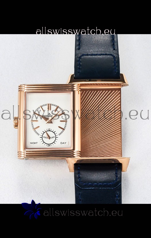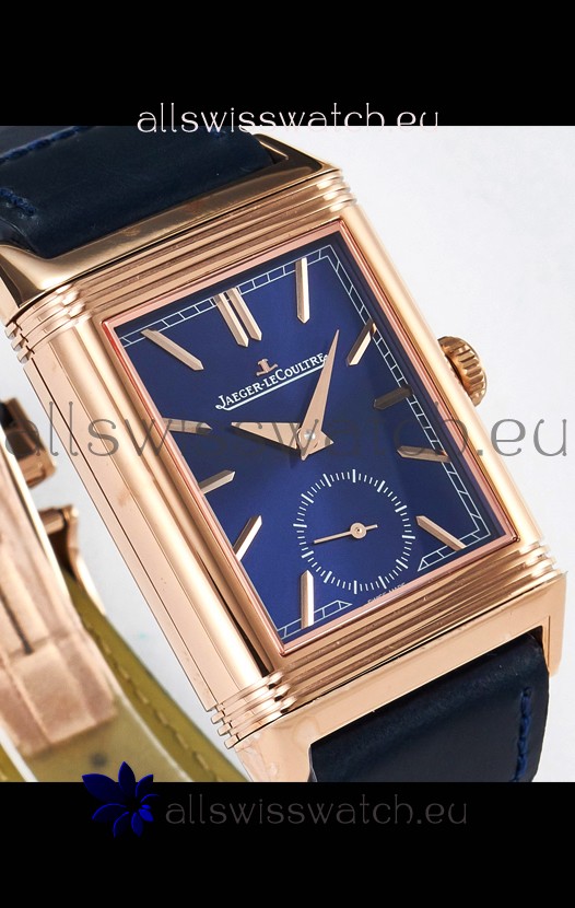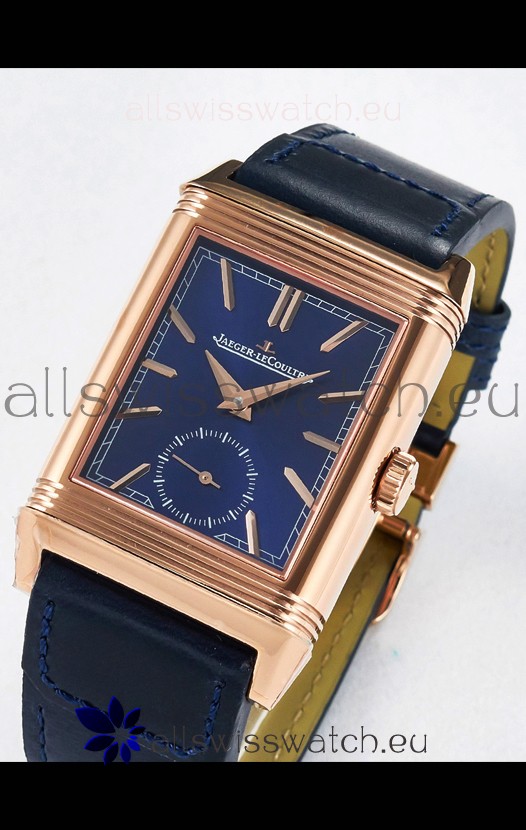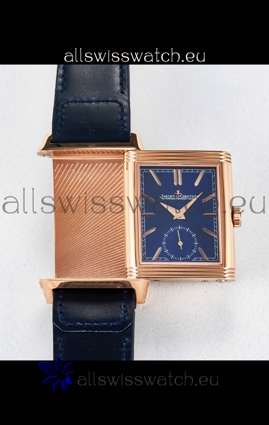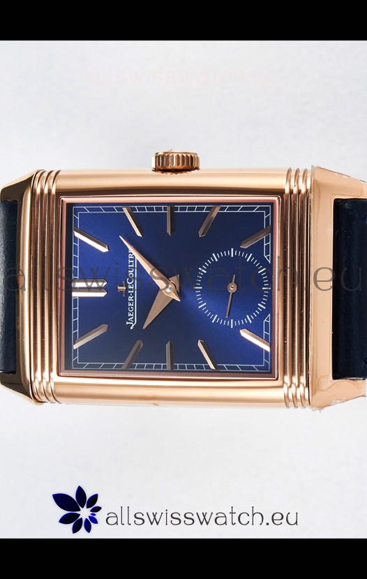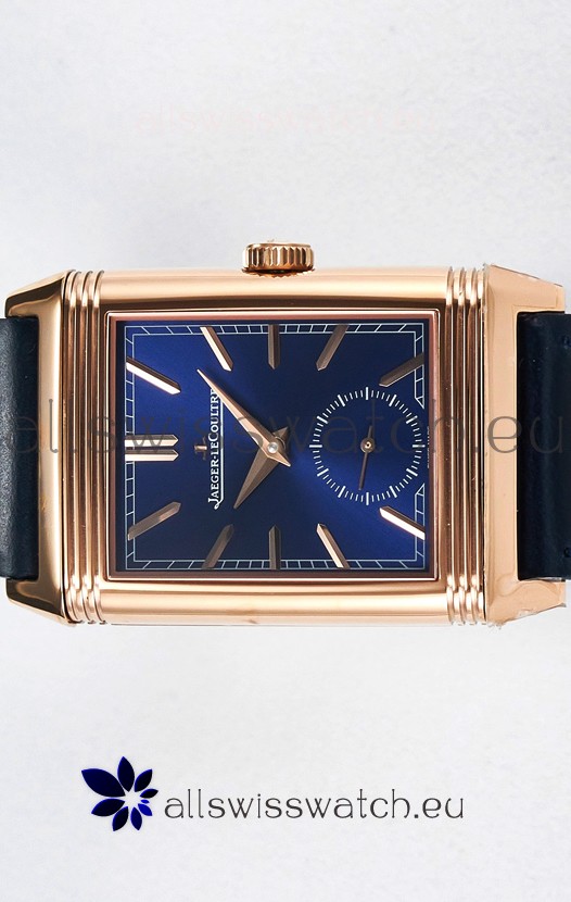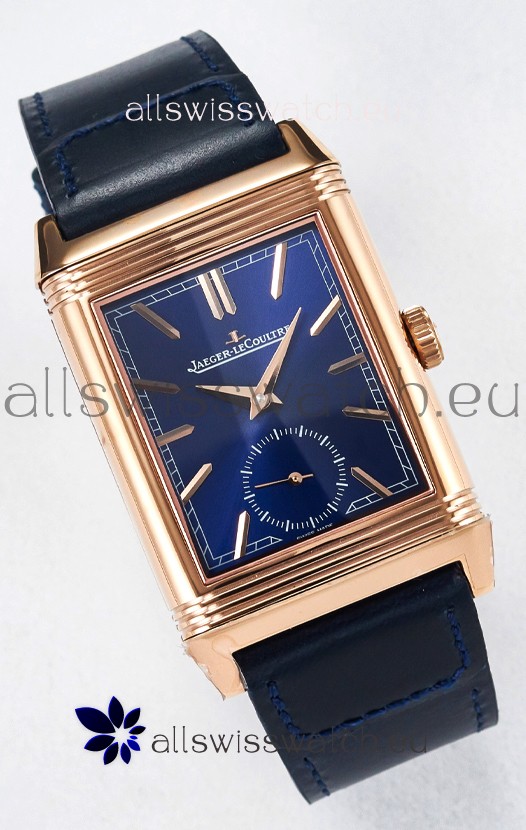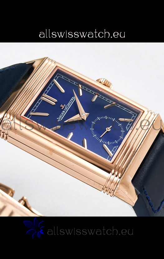 Jaeger-LeCoultre Reverso Super Clone DuoFace Blue/White Rose Gold Replica Watch