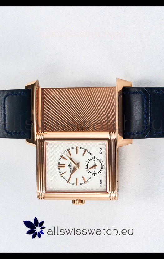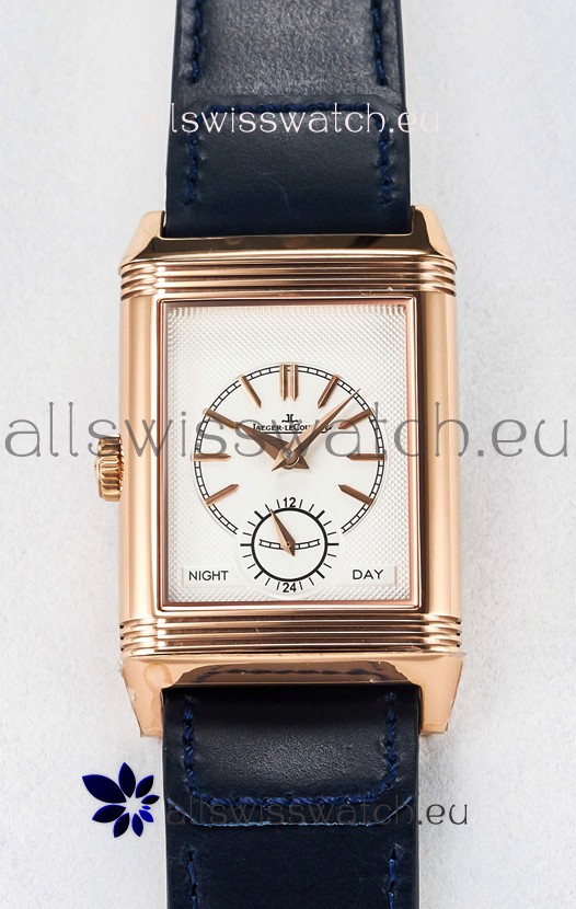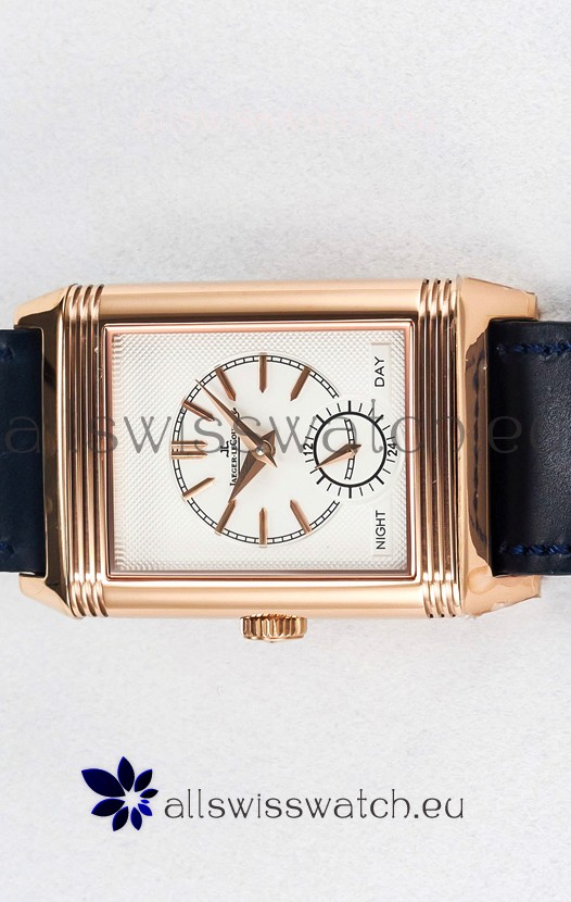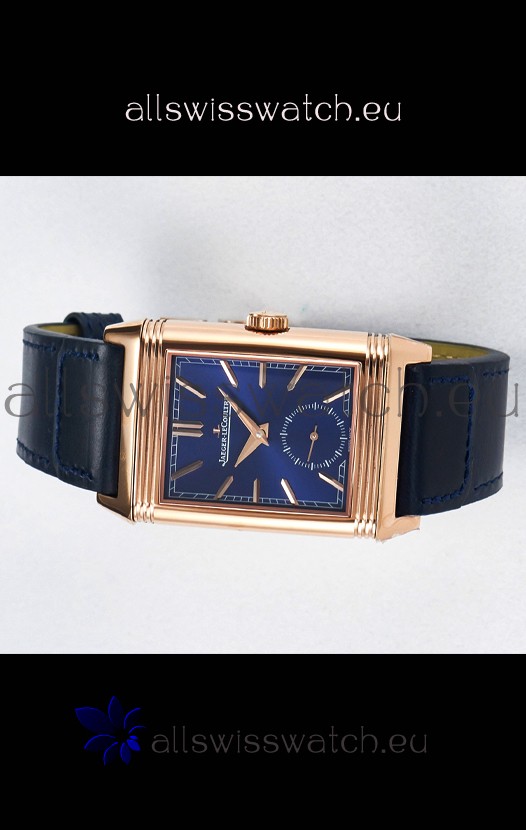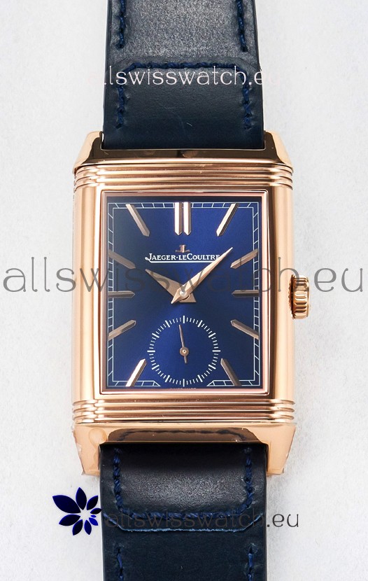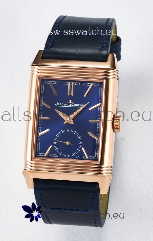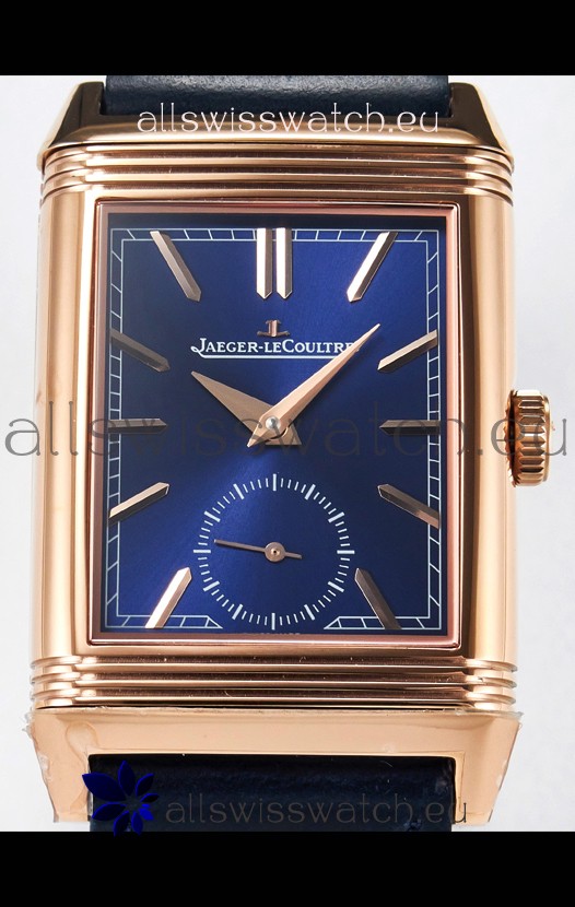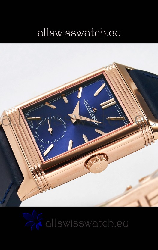Jaeger-LeCoultre Reverso Super Clone DuoFace Blue/White Rose Gold Replica Watch