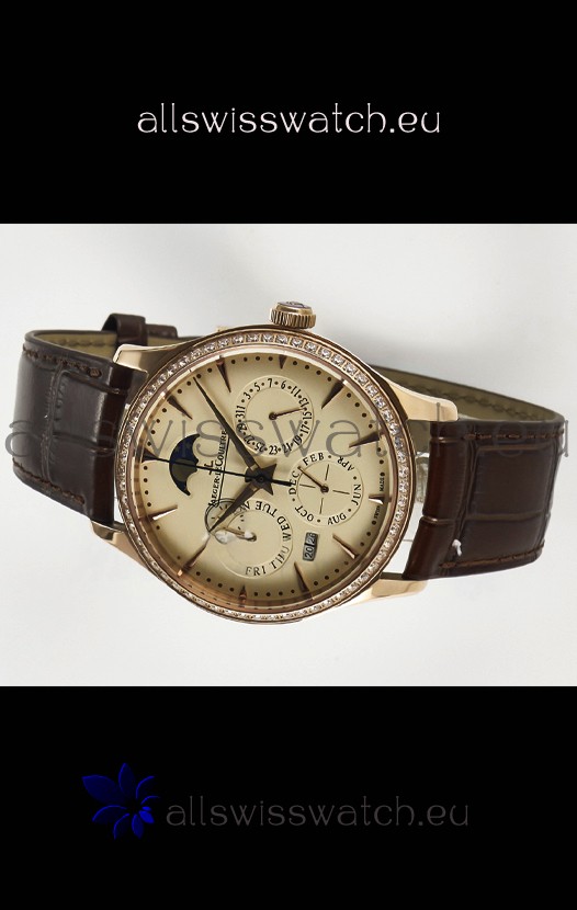 You're reviewing: Jaeger LeCoultre Super Clone Master Ultra-Thin Perpetual Calendar Cream Dial Diamonds Bezel Watch