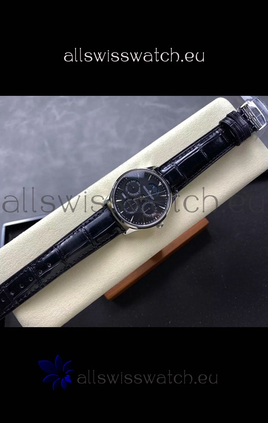 Black Dial with Functional Moonphase for Day and Night Indication, Month Indicator, Day and Date Indicators and year Indicator