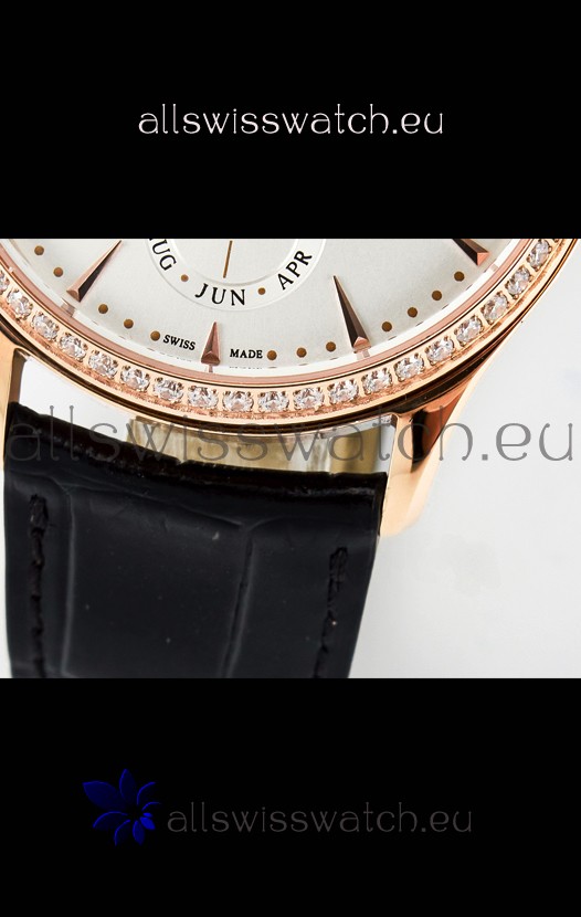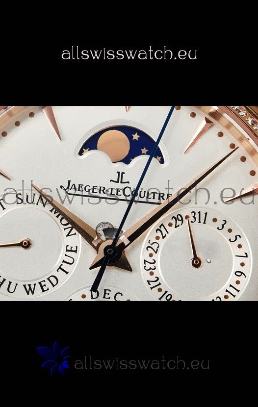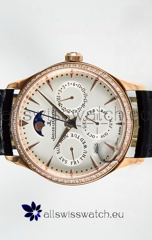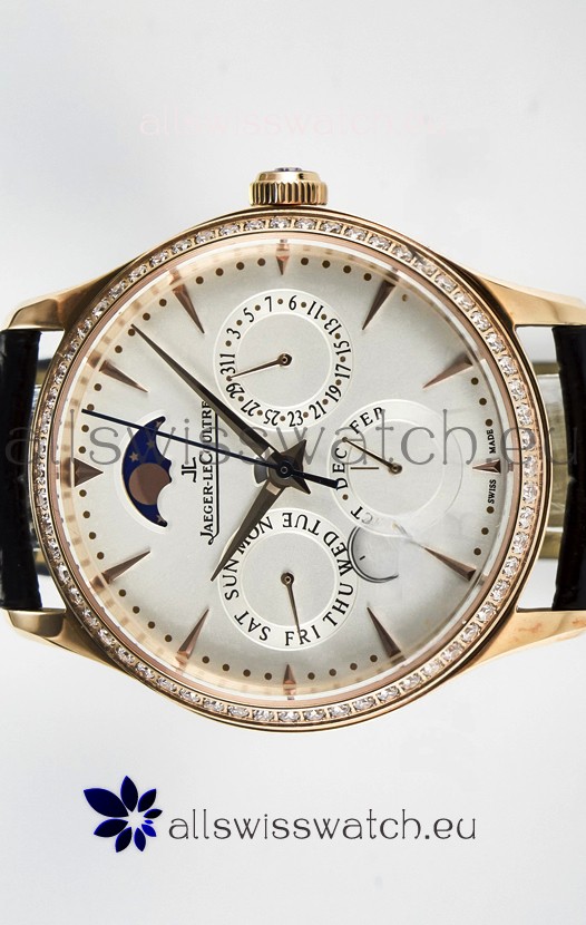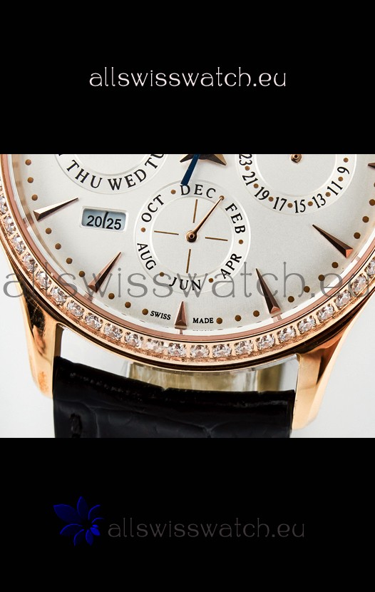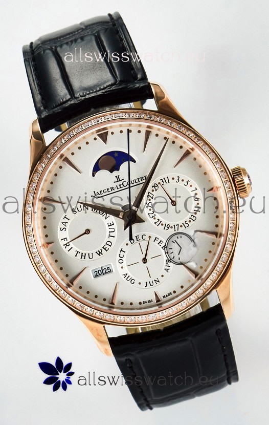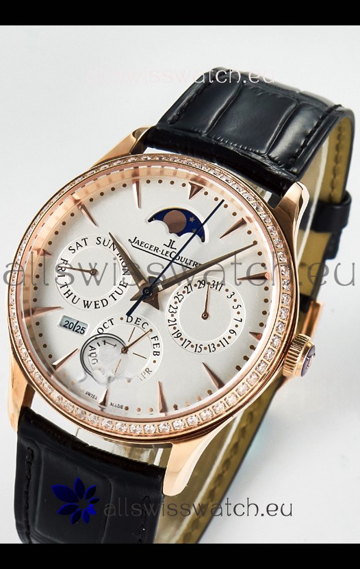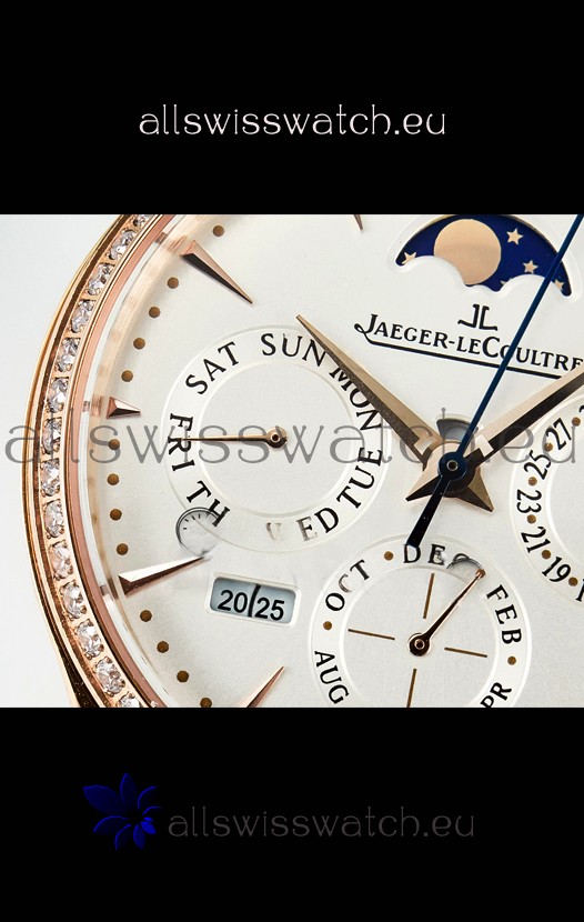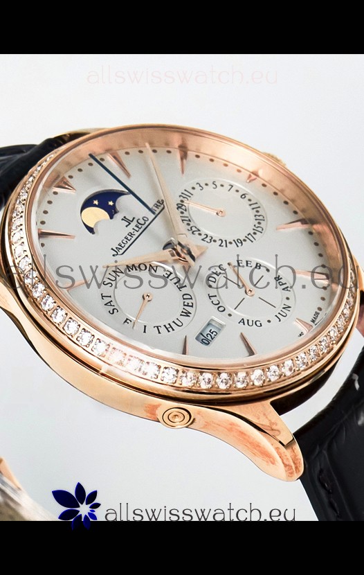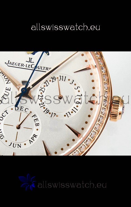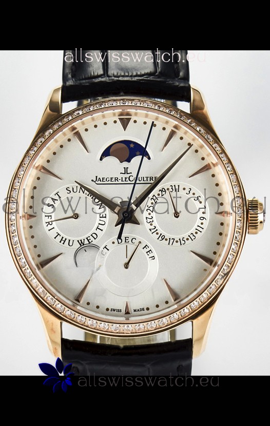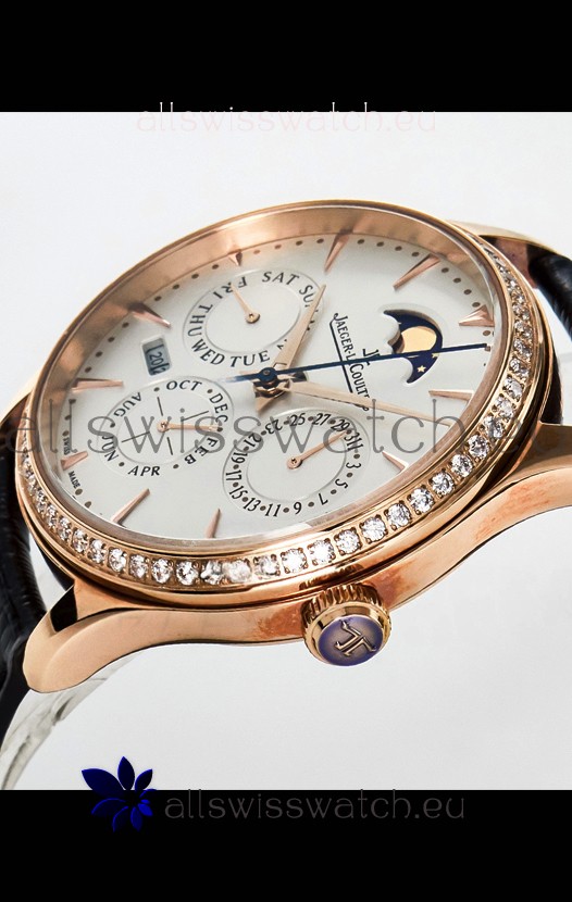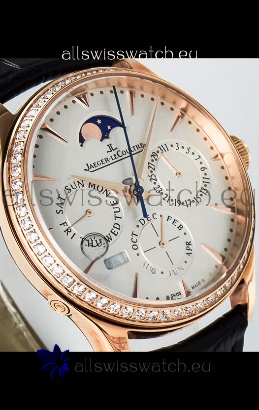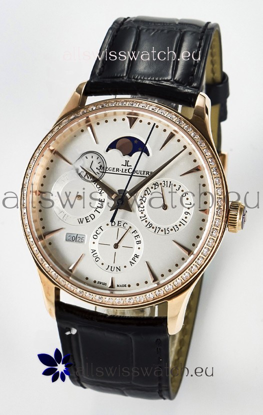 Jaeger LeCoultre Master Ultra-Thin Perpetual Calendar White Dial Diamonds Bezel Super Clone Watch