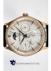 Jaeger LeCoultre Super Clone Master Ultra-Thin Perpetual Calendar White Dial Diamonds Bezel Watch