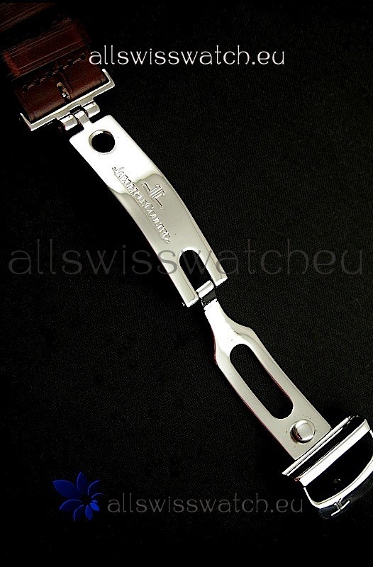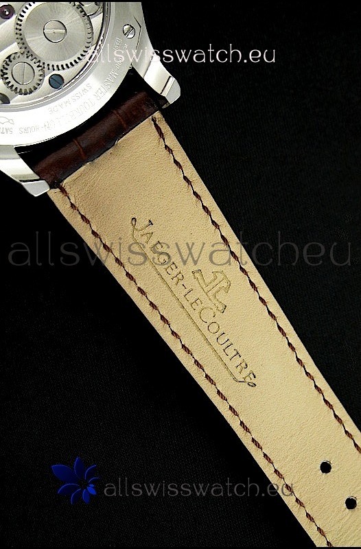 Strap: Genuine Brown Leather Strap with Jaeger-Le Coultre markings and engravings