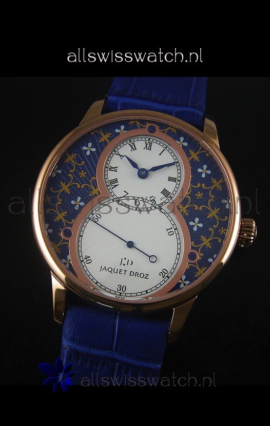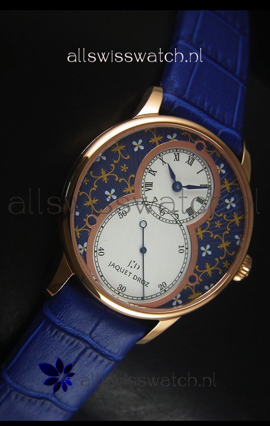 Jaquet Droz Grande Seconde Watch Rose Gold Blue Grand Feu paillonné-enameled Dial
