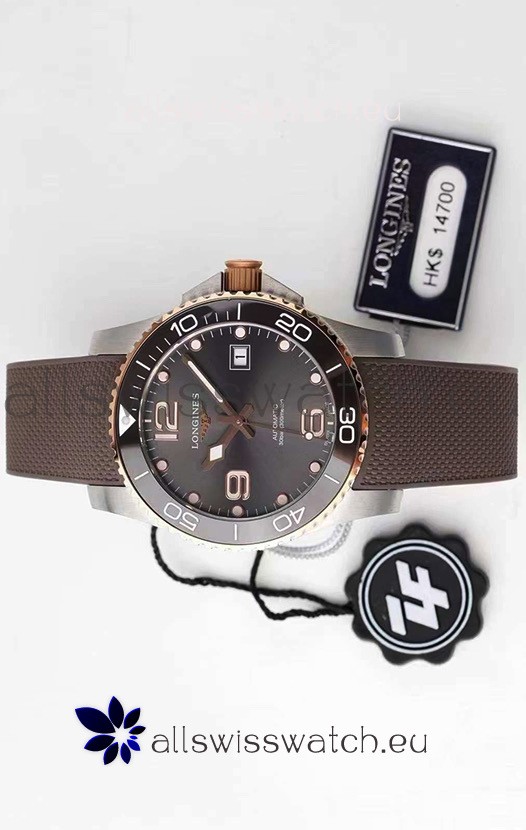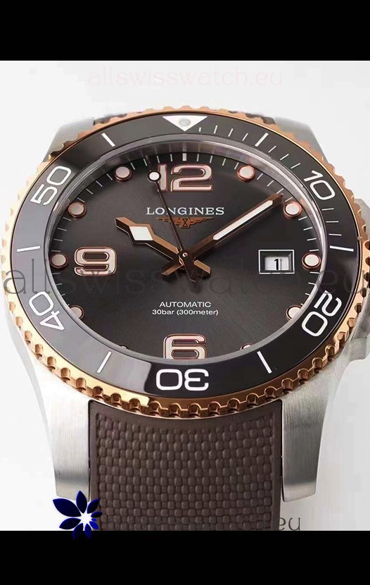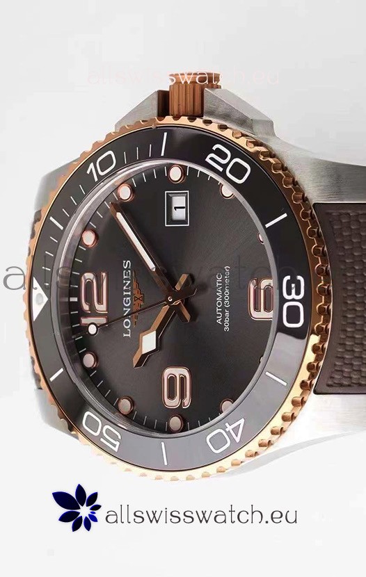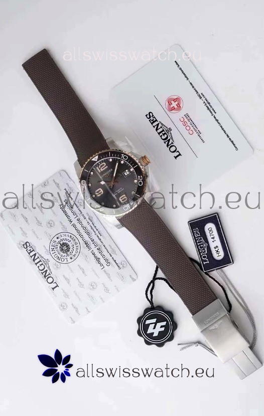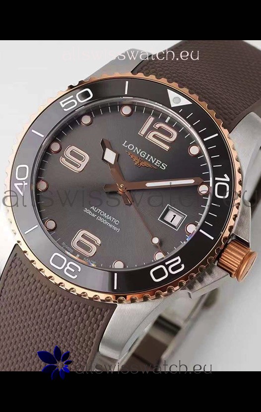 Longines HydroConquest 1:1 Swiss Replica Watch in Grey Dial Rubber Strap Rose Gold Bezel