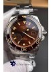 Brown dial with Superlumed Hour Markers and Bi-Directional Rotating Bezel. Functional Fourth GMT Hand.