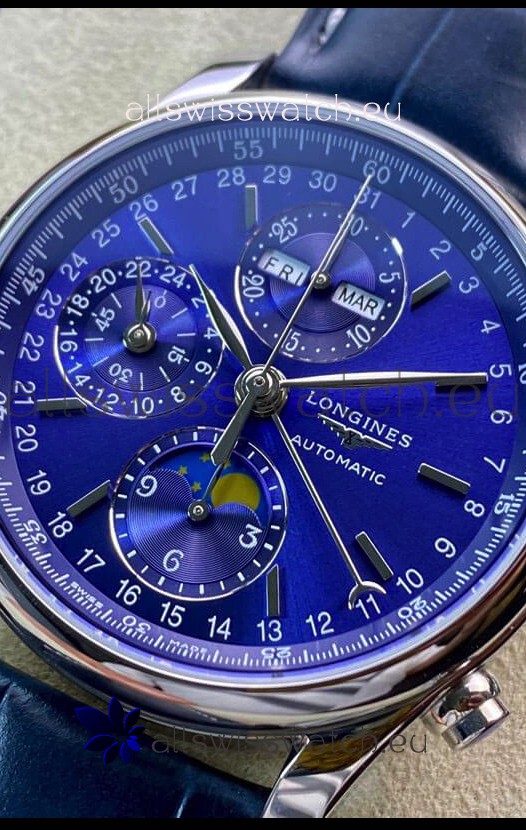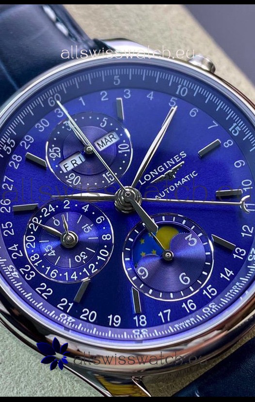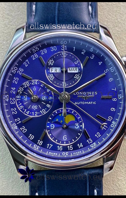 Longines Master Collection REF L2.673.4.92.0 Swiss Replica Watch in Blue Dial Leather Strap