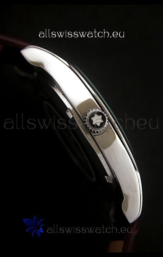 Strap: Genuine Brown Leather Strap with Mont Blanc Markings and Engravings