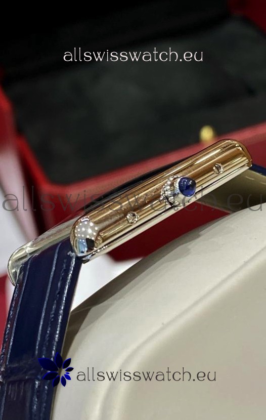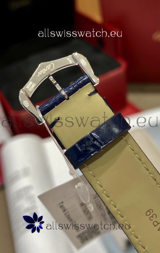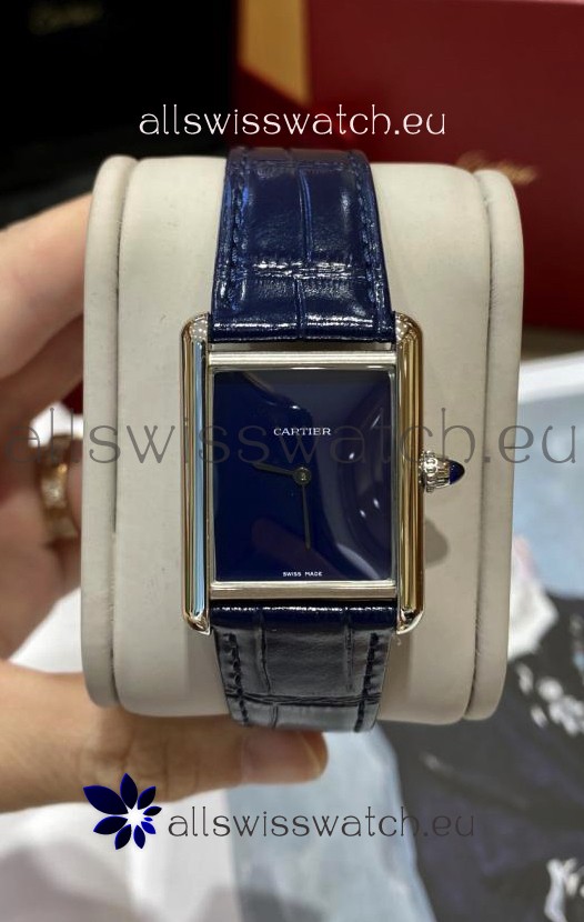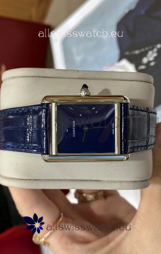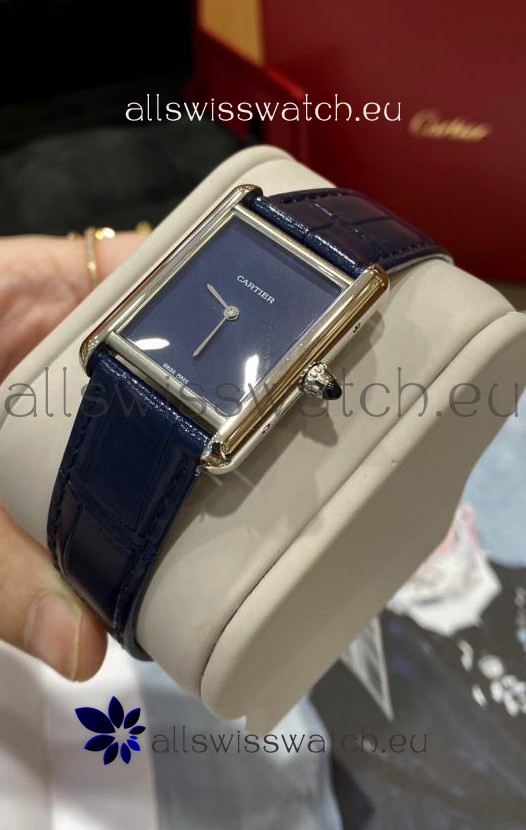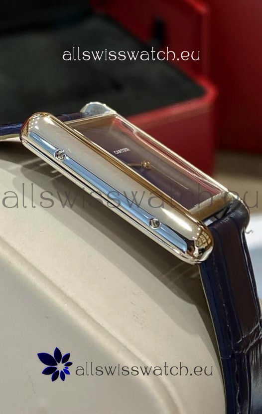 Must De Cartier Tank Edition Watch in 904L Stainless Steel Casing Dark Blue Dial