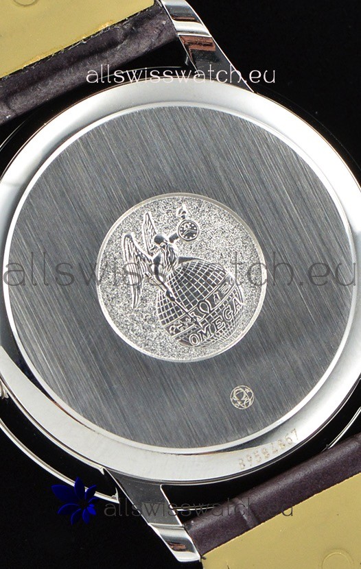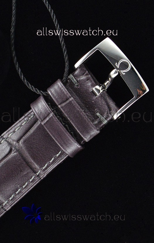 Genuine Leather strap with Stainless Steel Buckle complete with omega markings and engravings
