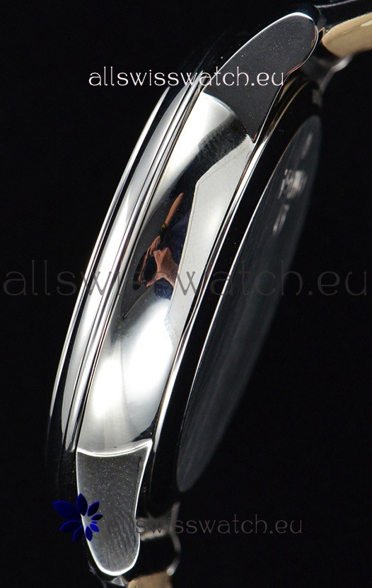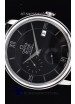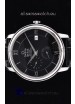 Black Dial with Sub dials for Power Reserve and Seconds Hand Indicator with Date Indicator at 3 O'Clock