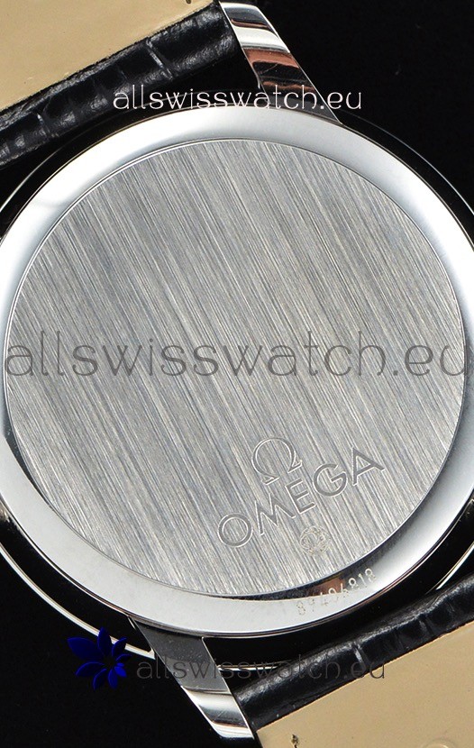 Genuine Leather strap with Stainless Steel Buckle complete with omega markings and engravings
