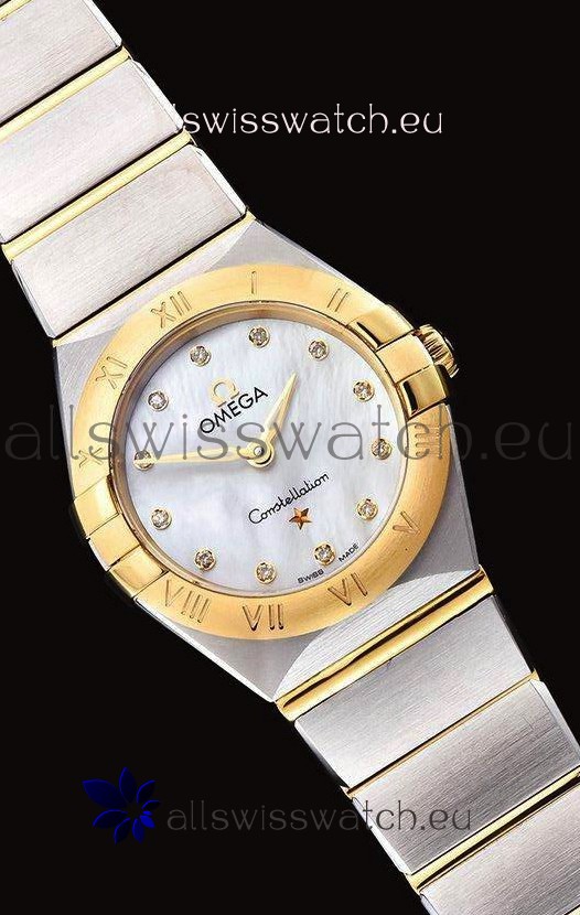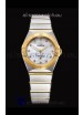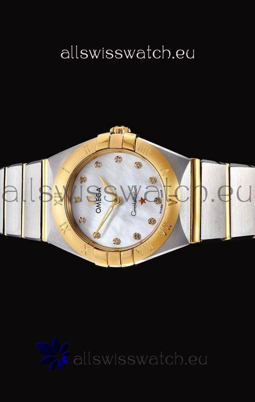 Omega Constellation Ladies Swiss Quartz 1:1 Mirror Replica - Two Tone Casing in White Pearl Dial
