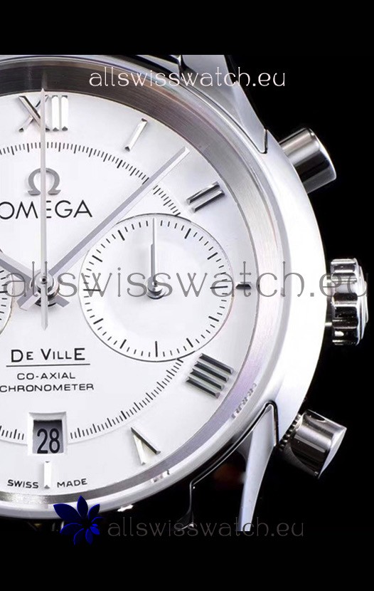 Omega De Ville Chronograph 1:1 Mirror Replica Watch in White Dial 42MM