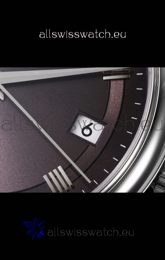 Grey Dial with Steel Markers and Date Window at 3 O'Clock. Long Seconds hands almost touching the Corners as per the Genuine