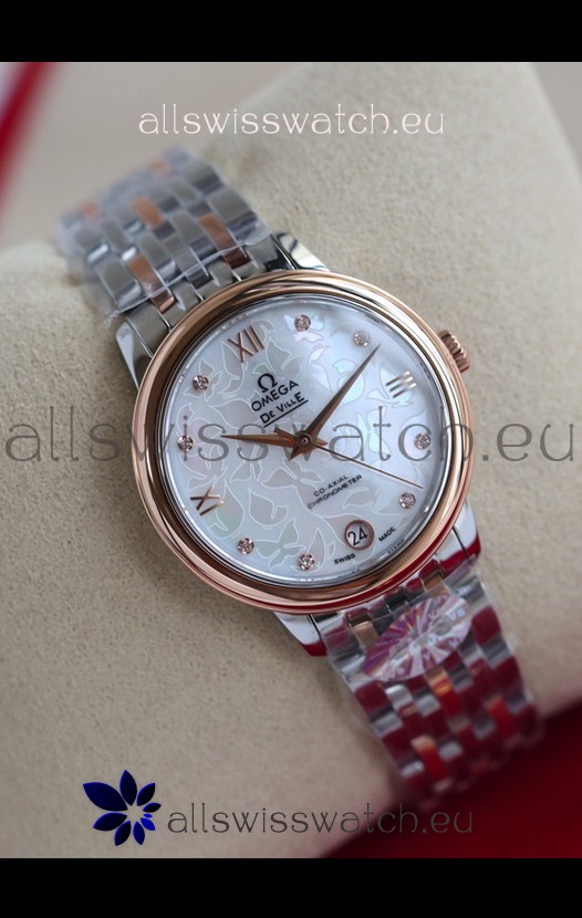 Omega De Ville Edition Swiss Automatic Watch in Two Tone Rose Gold White Dial