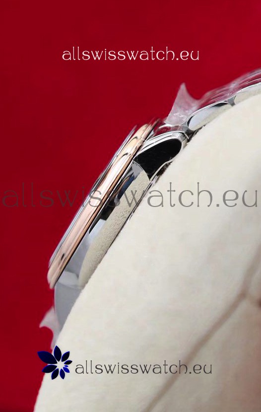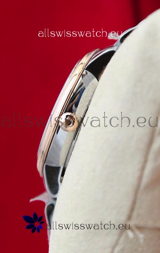 316L Solid Polished Stainless Steel Case complete with Omega Markings and Engravings as per the originals. Rose Gold Plated Bezel