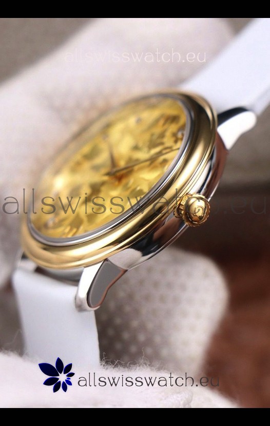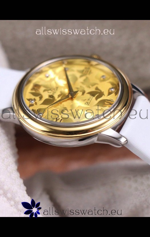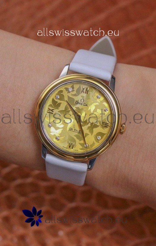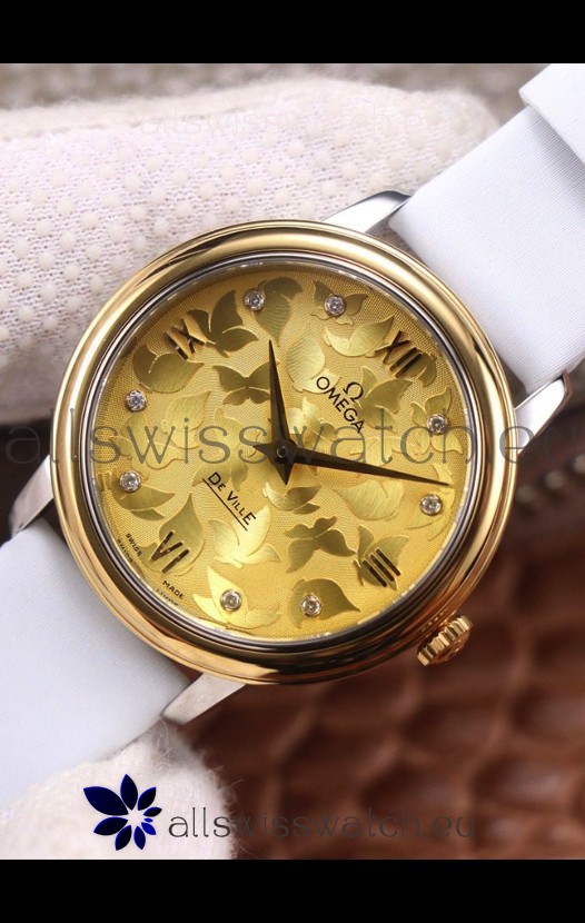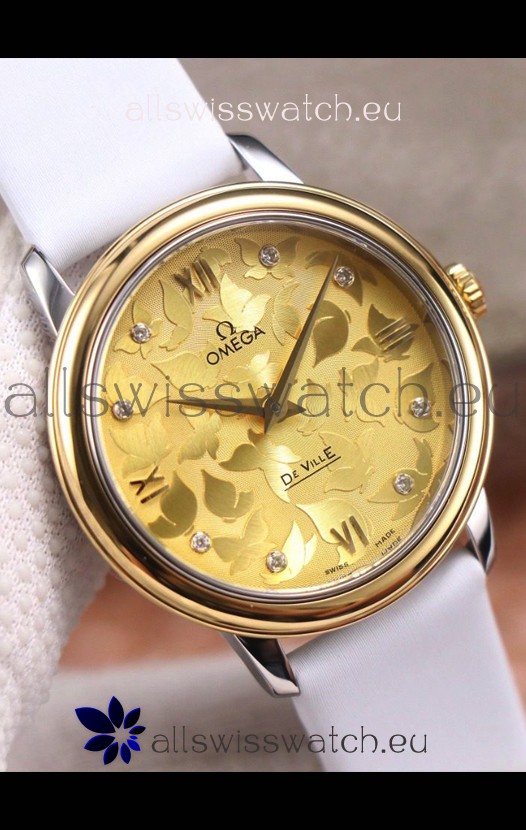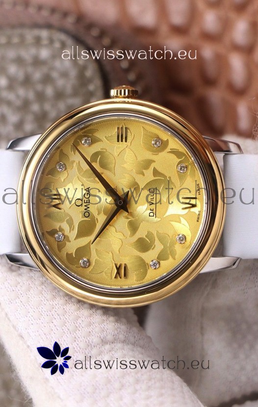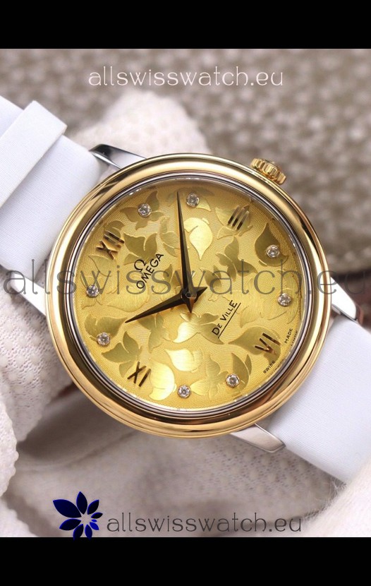 Omega De Ville Floral Dial Swiss Quartz Movement in Two Tone Casing - Gold Dial