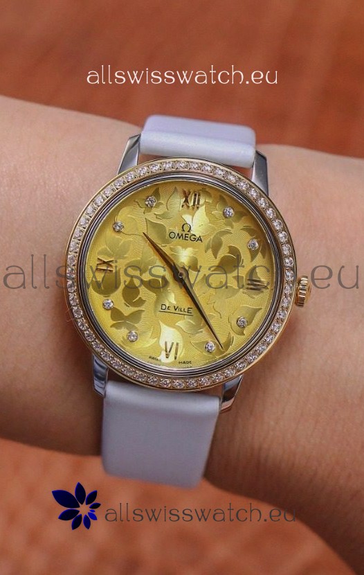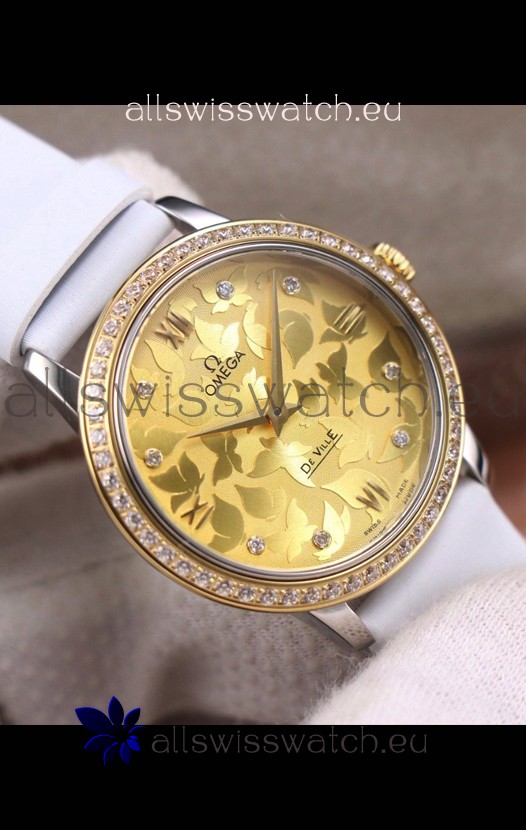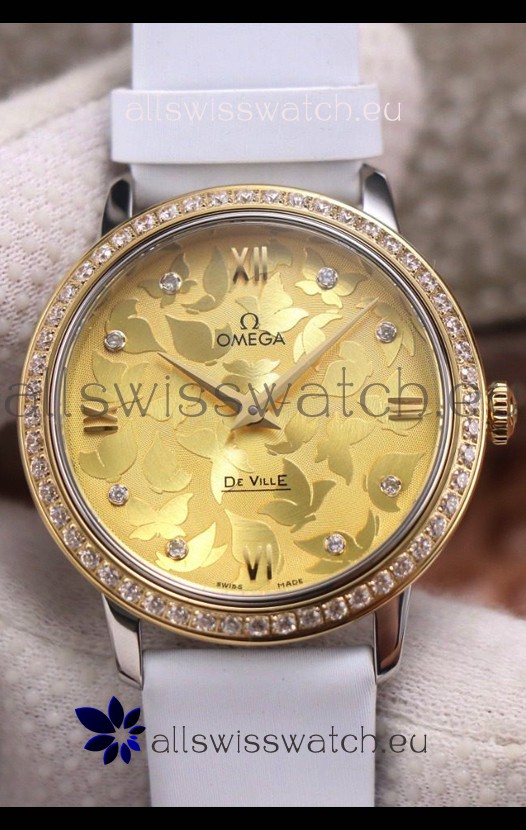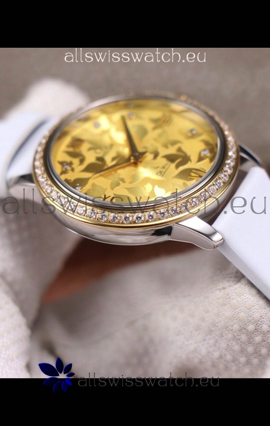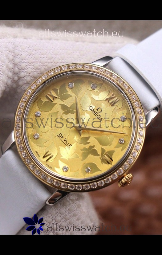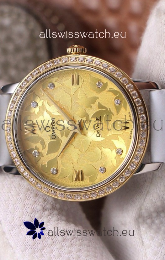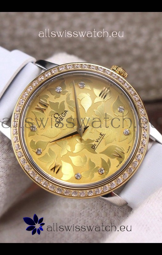 Omega De Ville Floral Dial Swiss Quartz Movement in Two Tone Casing - Gold Dial