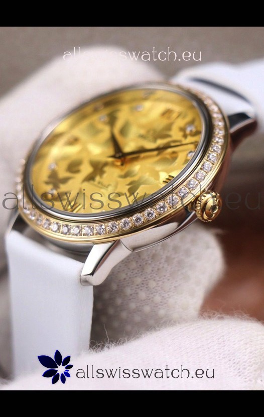 Gold Floral Dial with Diamonds Hour Markers