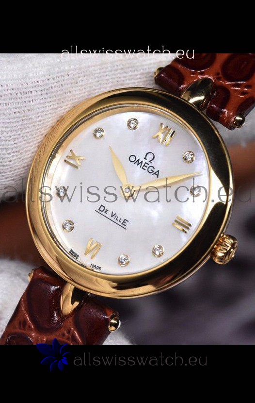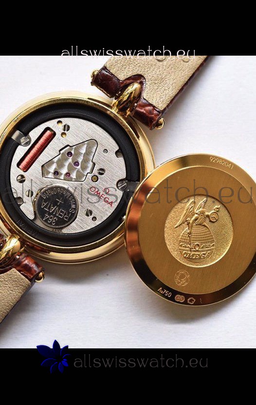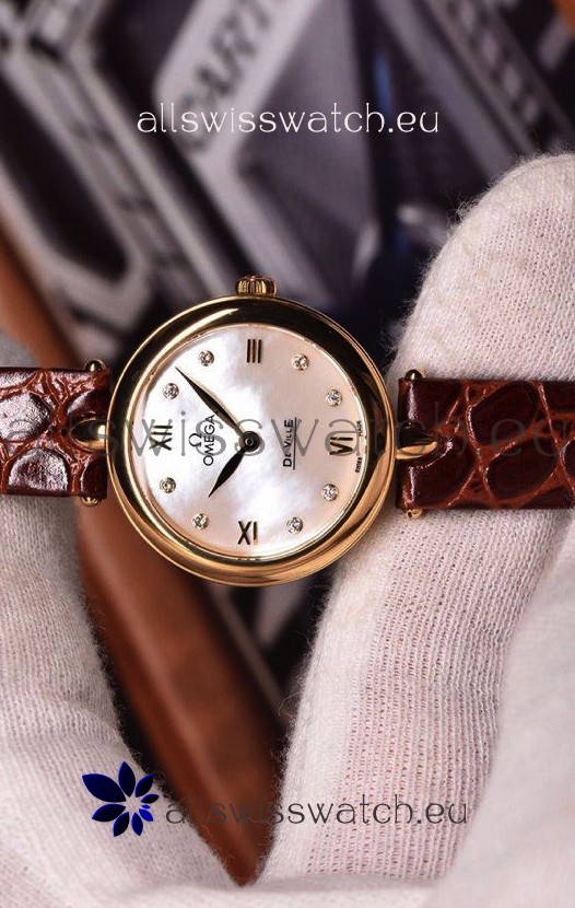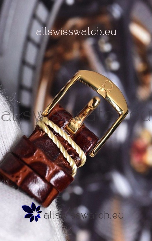 Omega De Ville Prestige Dewdrop Edition Swiss Quartz Watch in Rose Gold Brown Strap
