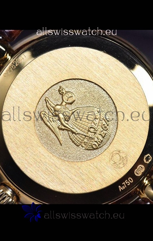 18K Rose Gold Plating on 316L Solid Polished Stainless Steel Case complete with Omega Markings and Engravings as per the originals.