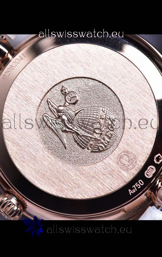 18K Rose Gold Plating on 316L Solid Polished Stainless Steel Case complete with Omega Markings and Engravings as per the originals.