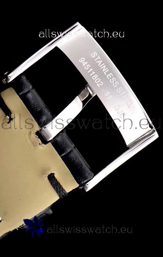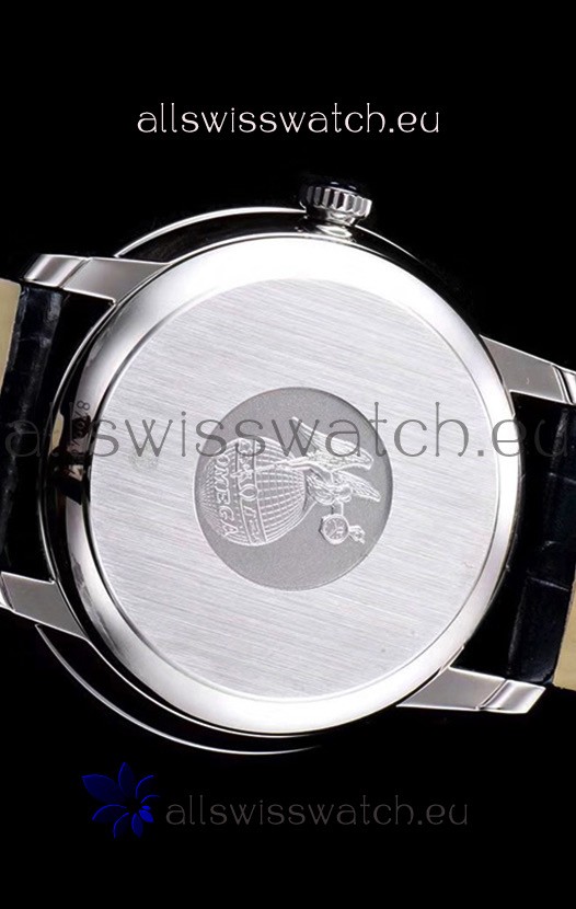 Genuine Leather strap with Stainless Steel Tang Buckle complete with omega markings and engravings