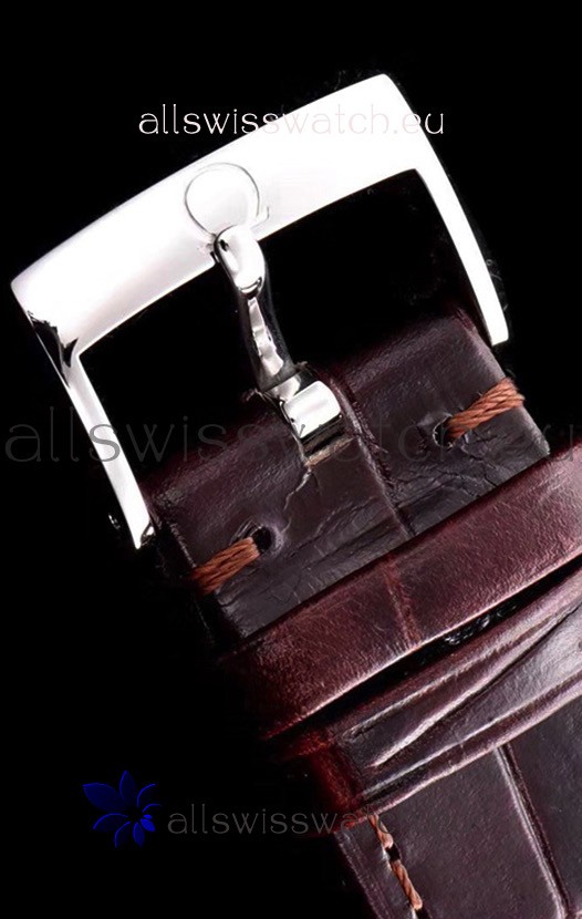 Genuine Leather strap with Stainless Steel Tang Buckle complete with omega markings and engravings