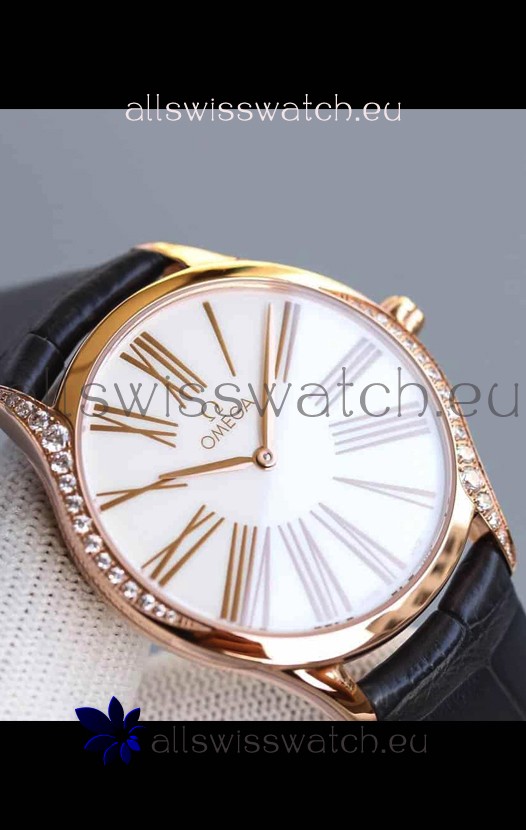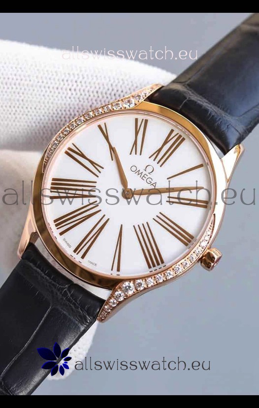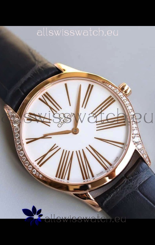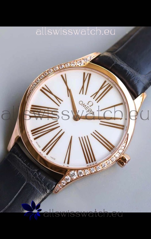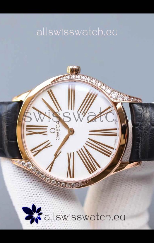 Omega De Ville Tresor Edition Swiss Quartz Watch 36MM Rose Gold Casing White Dial