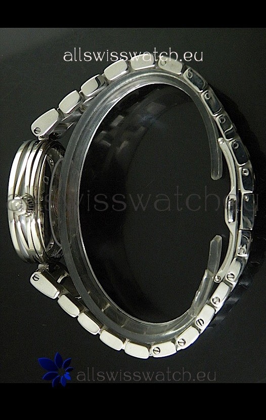 Strap: 440 Polished Stainless Steel Strap linked with Screws with Omega Buckle Clasp