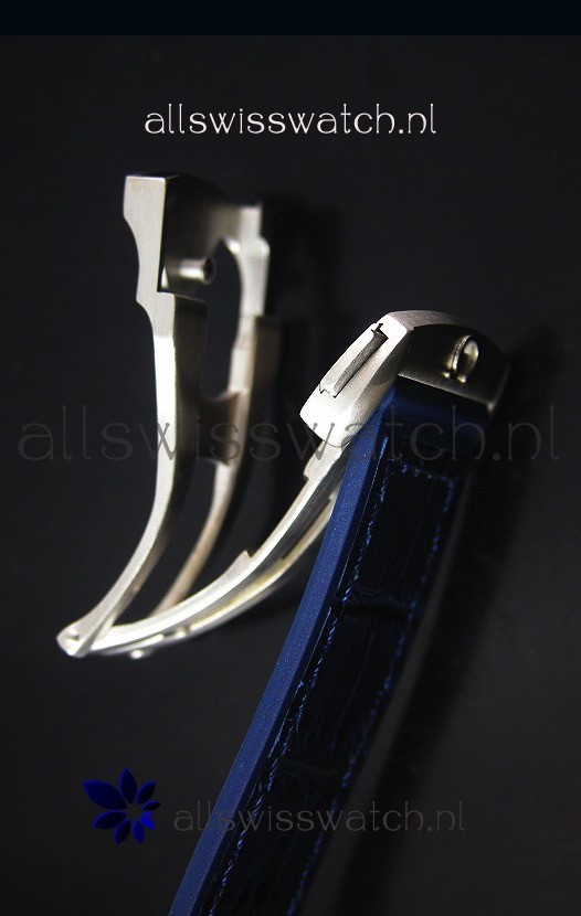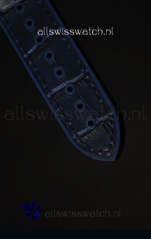 Genuine Blue Leather Strap with Stainless Steel Folding Clasps complete with Omega Markings and Engravings