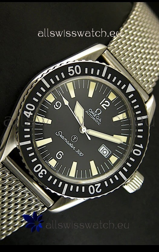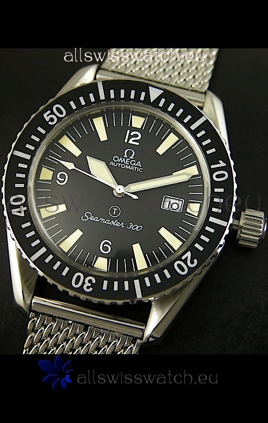 Omega Seamaster 300 R-Navy Black Dial Swiss Watch with Mesh Strap