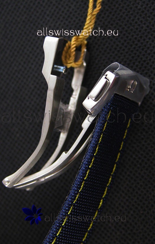 Blue Canvas Clad Strap with Folding Clasps complete with Omega Markings and Engravings as per the Originals