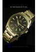 Black Tuxedo Dial with Date Window at 3 O'Clock and Steel Hour Markers.