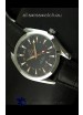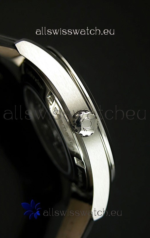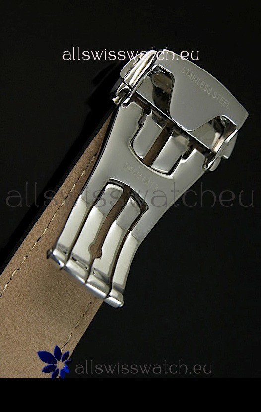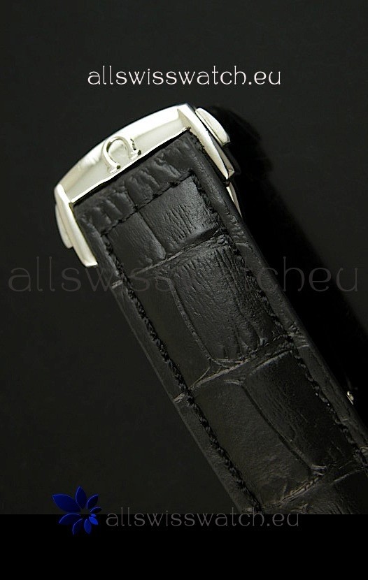 Genuine Black Leather Strap with Double Folding Omega Stainless Steel Clasp