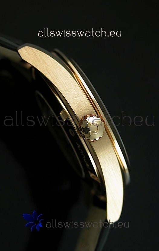 18K Pink Gold Plating on 440 Solid Stainless Steel Case with Omega Markings and Engravings