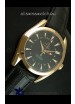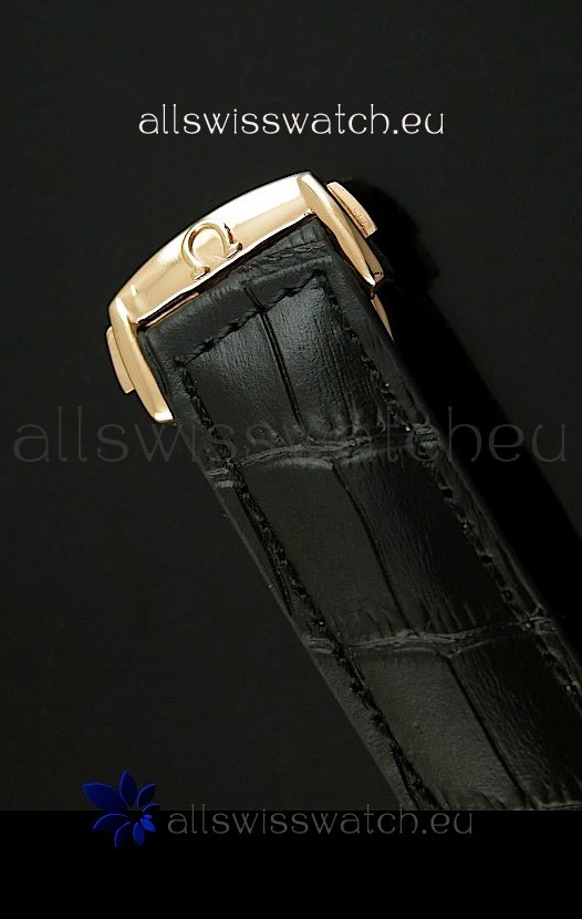 Genuine Black Leather Strap with Double Folding Omega 18K Gold Plated Steel Clasp
