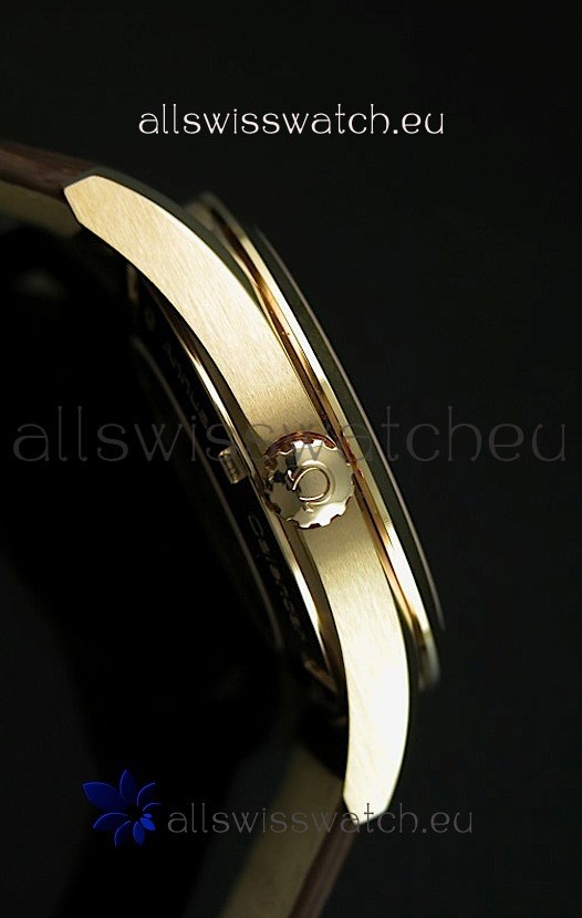 18K Pink Gold Plating on 440 Solid Stainless Steel Case with Omega Markings and Engravings