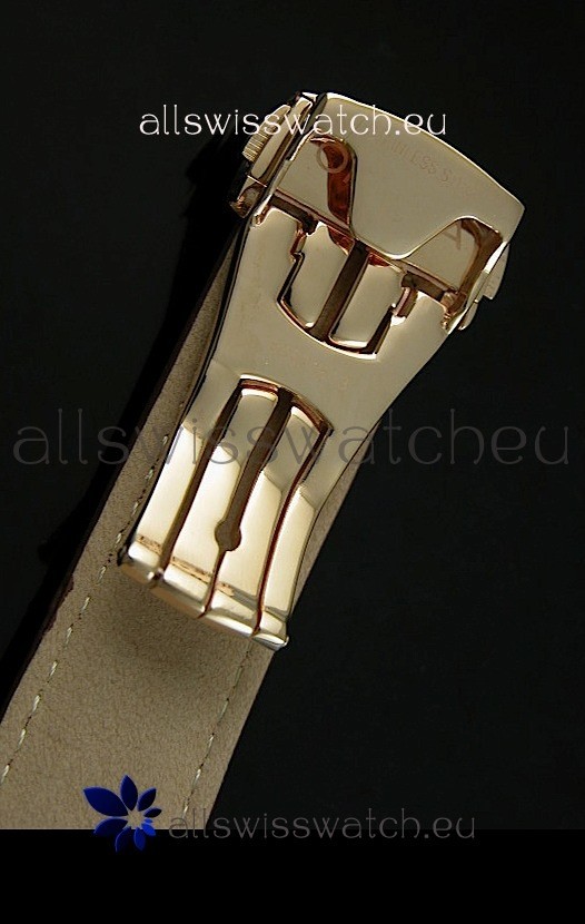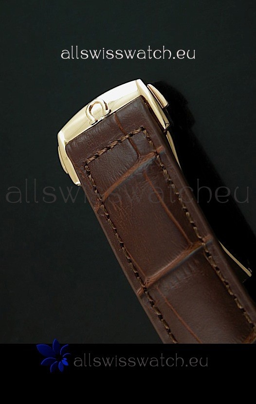 Genuine Black Leather Strap with Double Folding Omega 18K Gold Plated Steel Clasp