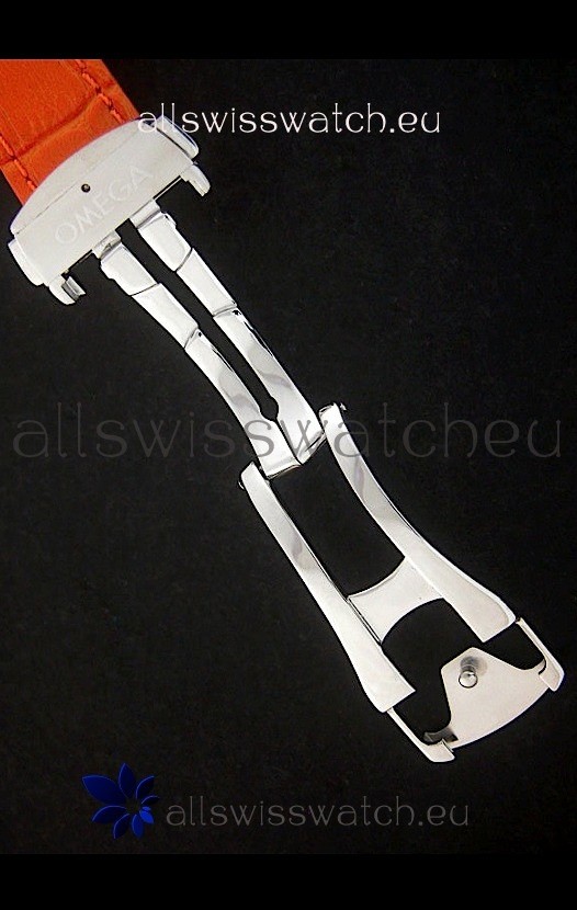 Strap: Orange Leather Strap with Omega Insignia Deployant Buckle